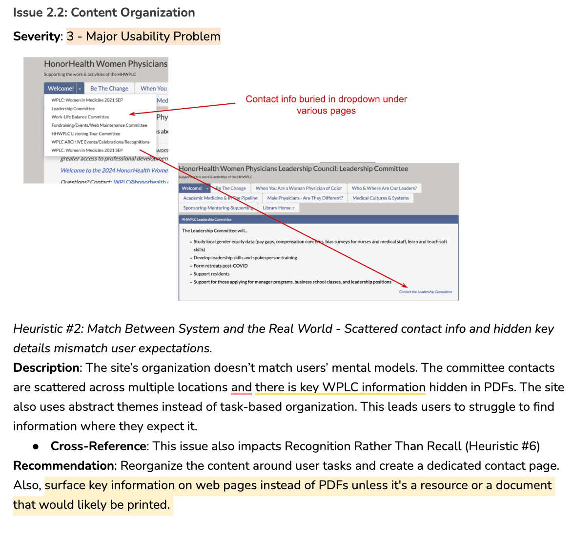 The WPLC website is supposed to help women physicians find resources, events, and community. But it wasn’t working. After talking with members and visitors, three big problems stood out:
